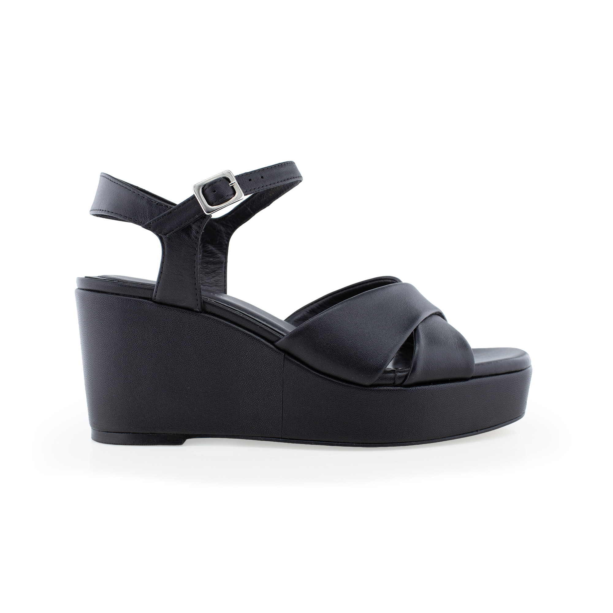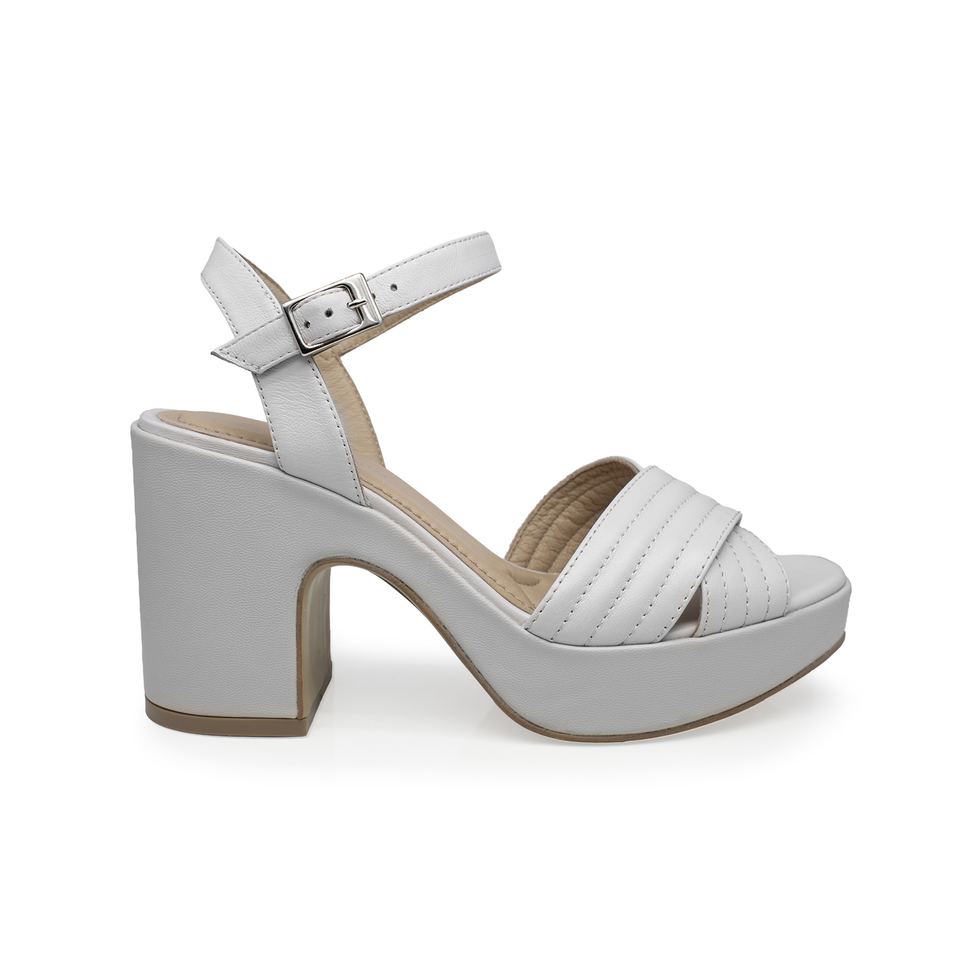 Sandalia media plataforma, tacón grueso.